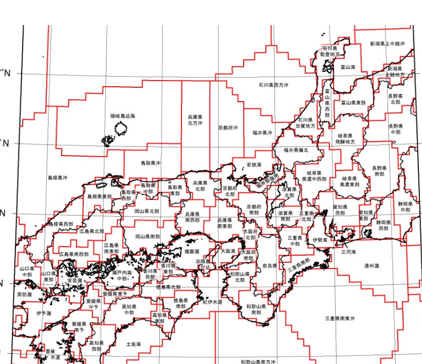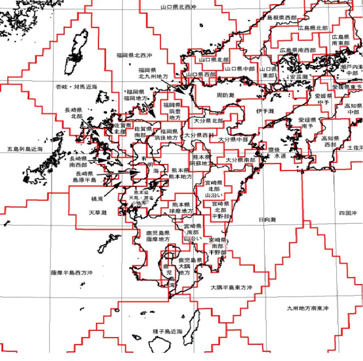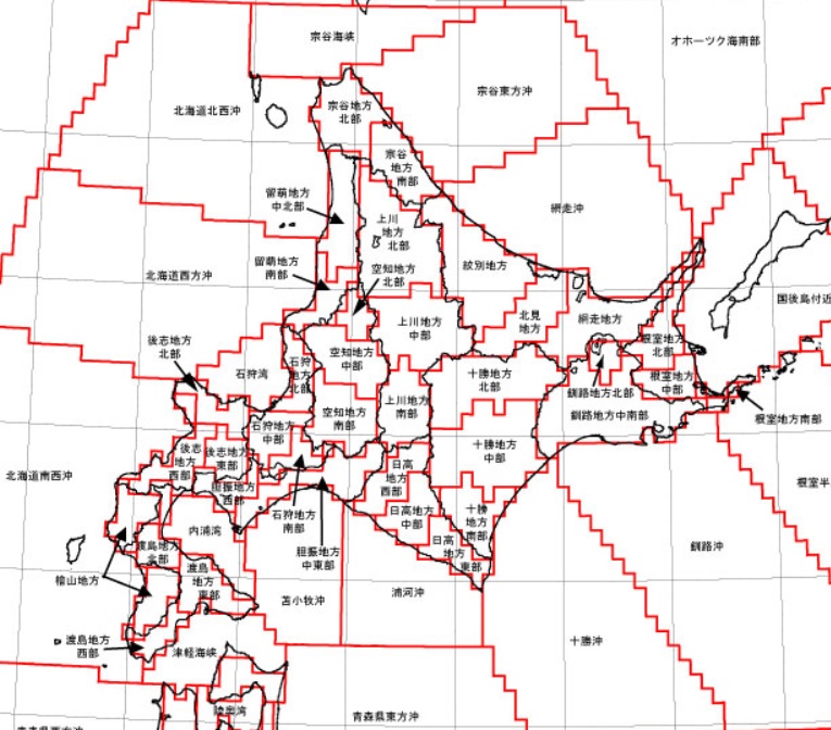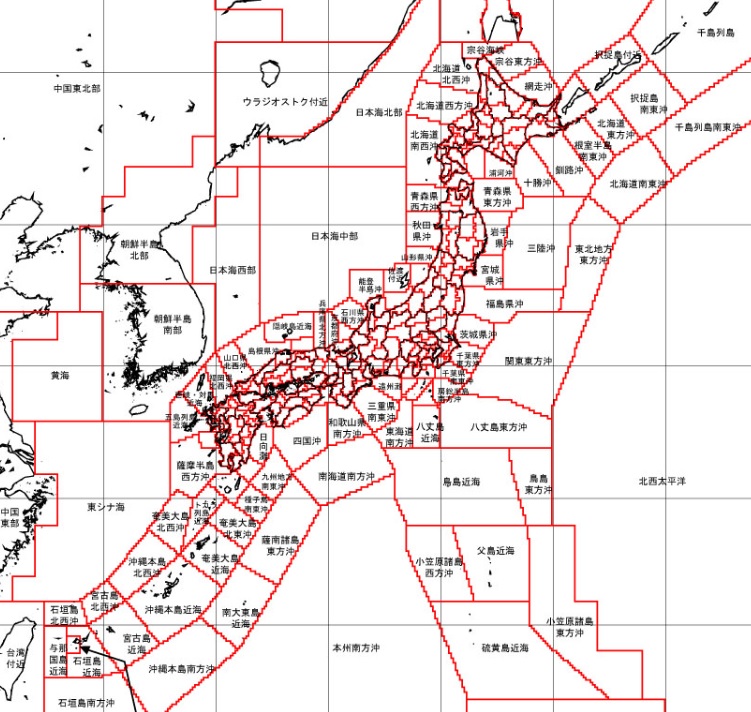 全国の震央地名 左の図は、全国の震央を区切ったものです。区切った部分には、震央の名前・震央地名があります。 左の図では、内陸部の部分が細かすぎて、表示できませんが、下の図で、引き伸ばしてあります。 震央とは震央(しんおう)は、地震または地下の爆発が発生した地点である震源の真上に当たる地表の点を表します。震源の真上にあたる地表の地点を震央といいます。 震央の位置は緯度・経度で示され、通常は地名(震央地名)で表されます。 一般には震源、震源地なども震央地名で表しています。 全国の震央地図は、内陸部が細かくて、表記できませんが、 「沖」「近海」「湾」などが分かります。 「宮城県沖」、「三陸沖」、「福島県沖」などは、 2011年発生の、東北地方太平洋沖地震以来、頻繁に発生しています。 この地図からは、沖縄方面が分かります。 奄美大島近海から沖縄本島近海、宮古島、石垣島の沖合の震央地名が分かります。 住んでいるところから離れていると、大雑把にしかとらえませんが、 地震発生時には、確認しておきましょう。 北海道の震央地名・地図