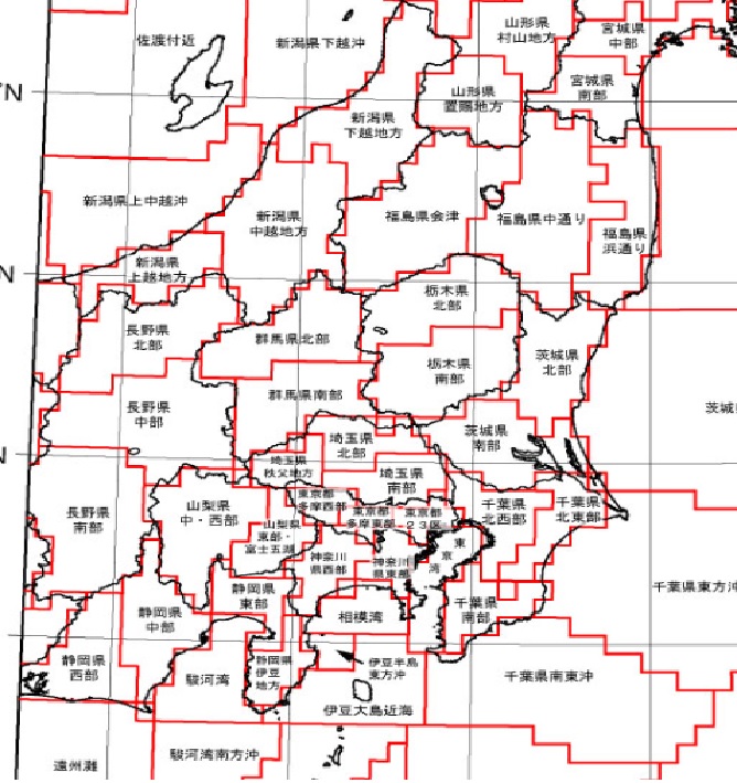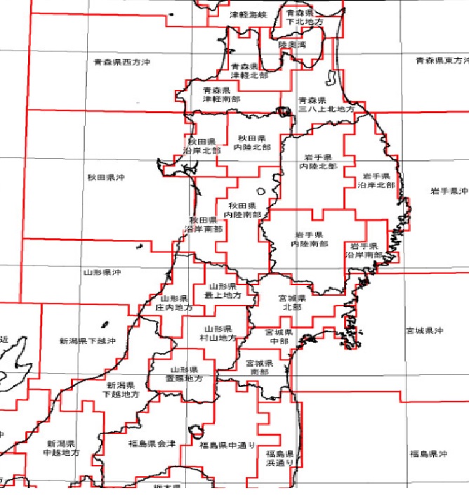 青森県、岩手県、宮城県、秋田県、山形県、福島県の震央地名です。